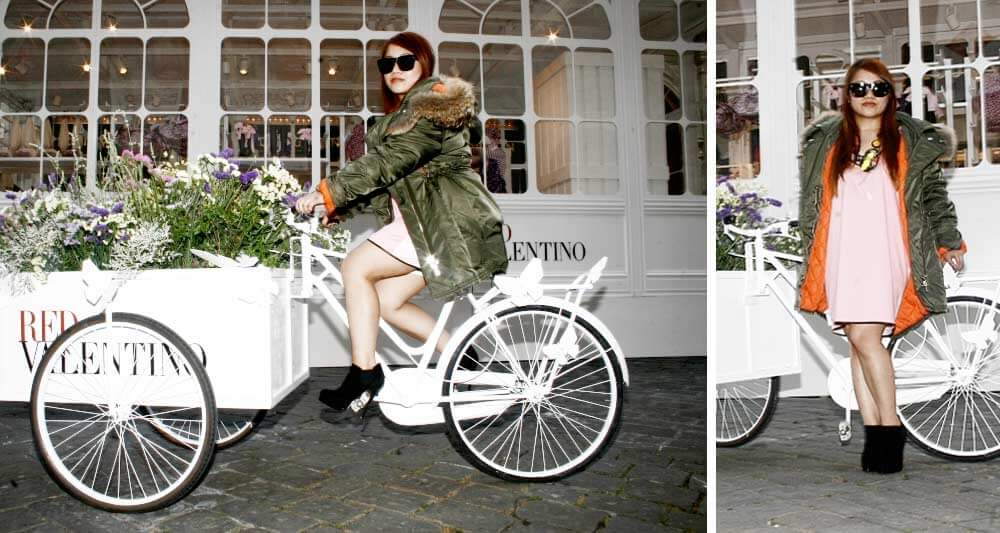 Wendy used her keen eye for accessories and unique style to create fashion forward looks with a sporty edge. Taking Givenchy, Borsalino and Simonetta Ravizza she went out on location and past the special Valentino pop up store contrasting her sharp selection with a soft back drop.
