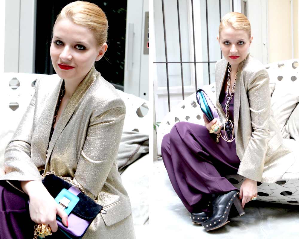 Sleek and elegant, our Italian blogger friend chose metallics and rich colors to give her looks a glamorous finish. Mixing big labels with smaller, emerging brands, this fashionista worked Balmain and Roksanda Ilincic with high heels by Sergio Rossi and Valentino to create sophisticated and polished outfits perfect for Fall/Winter 2011.